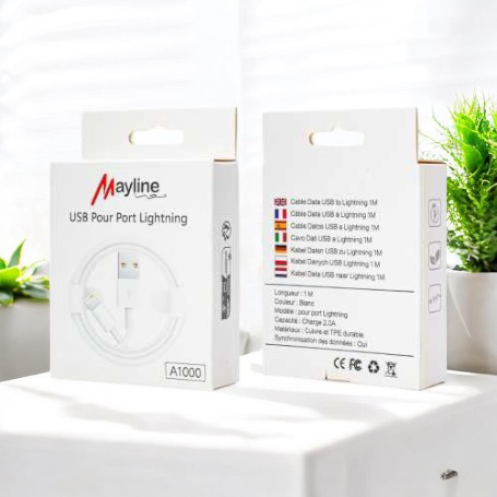 Le Câble USB vers Lightning 1M 20W Mayline est l'accessoire indispensable pour profiter d'une recharge rapide et d’un transfert de données fluide, tout en garantissant une utilisation quotidienne pratique et fiable.