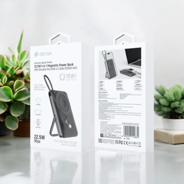 Soyez prêt à affronter la journée avec le Power Bank Magnétique Sans Fil Devia, votre compagnon indispensable pour rester connecté partout et à tout moment.