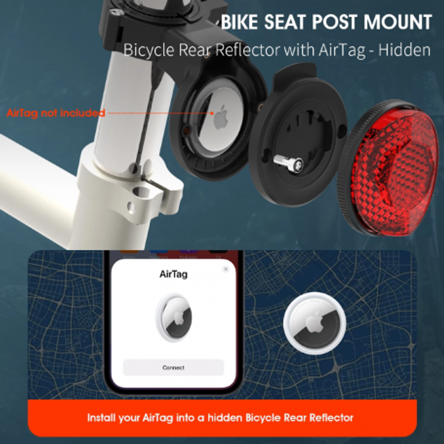 Support de tige de selle avec réflecteur arrière, feu arrière Radar et Apple AirTag (Mayline)